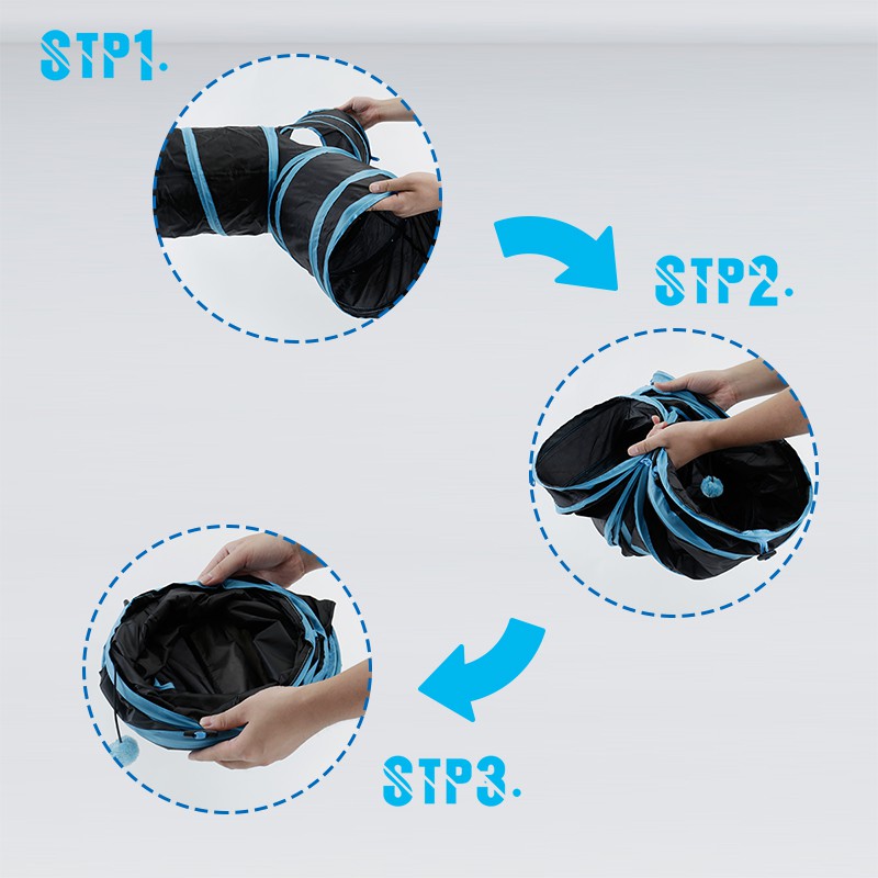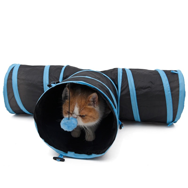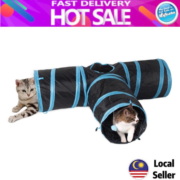 Lifesta Pet Cat Dog Collapsible 3 Way Pet Crinkly Train Tunnels Tubes Toy Tunnel Mainan Kucing Terowong Tiub