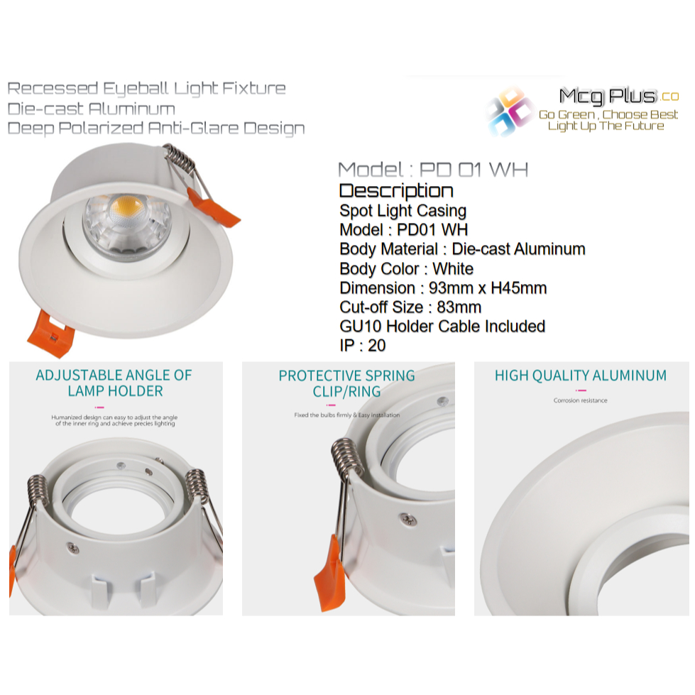 Lighting Fixtures & Eyeball Fitting Round White Eyeball Casing Anti-Glare Adjustable Recessed Die-cast Aluminum Fitting