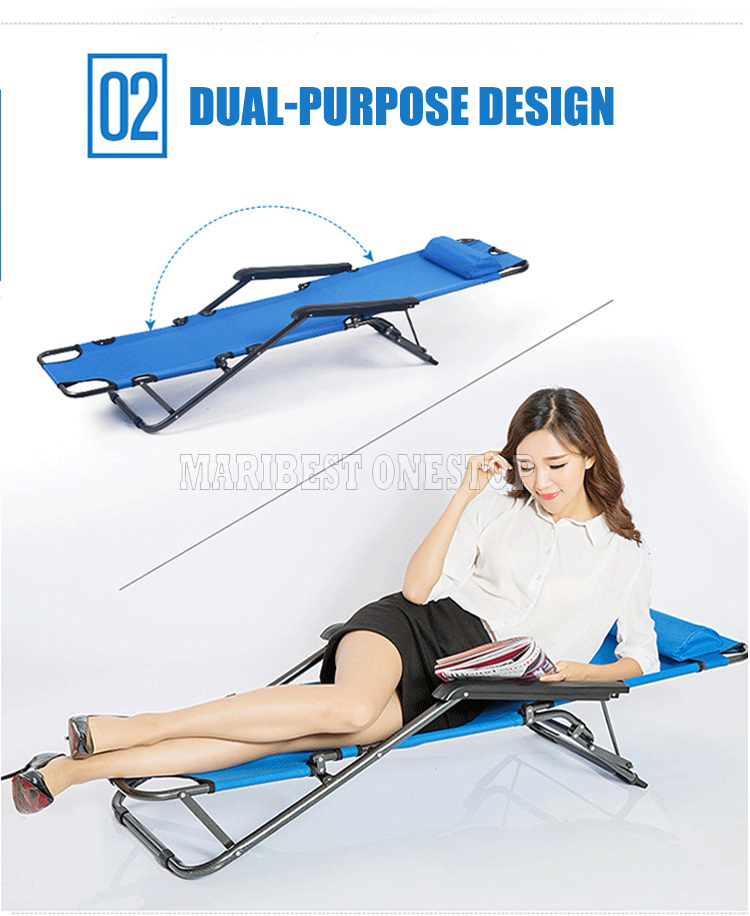 Lightweight Recliner Foldable Lazy Chair Adjustable Level Lounge Bed for Office Balcony Garden Beach Camping