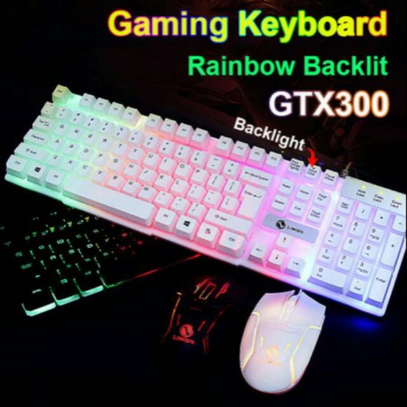 Limeide GTX300 Wired Gaming Keyboard and Mouse Set with LED Color Backlit Mechanical Feel 104 Keys Rainbow USB Office