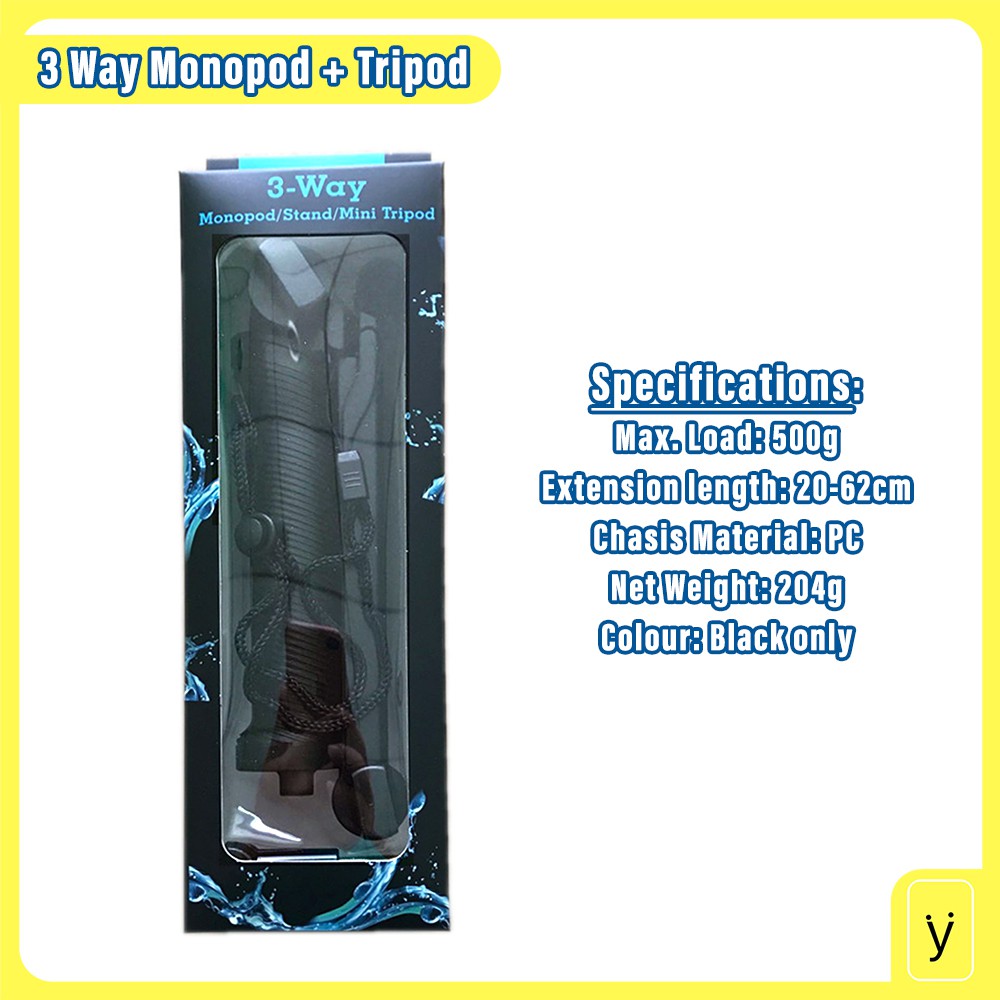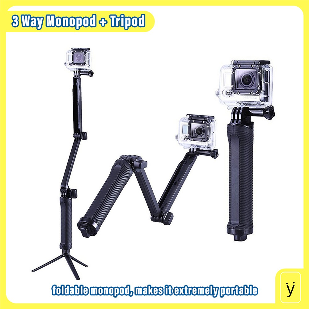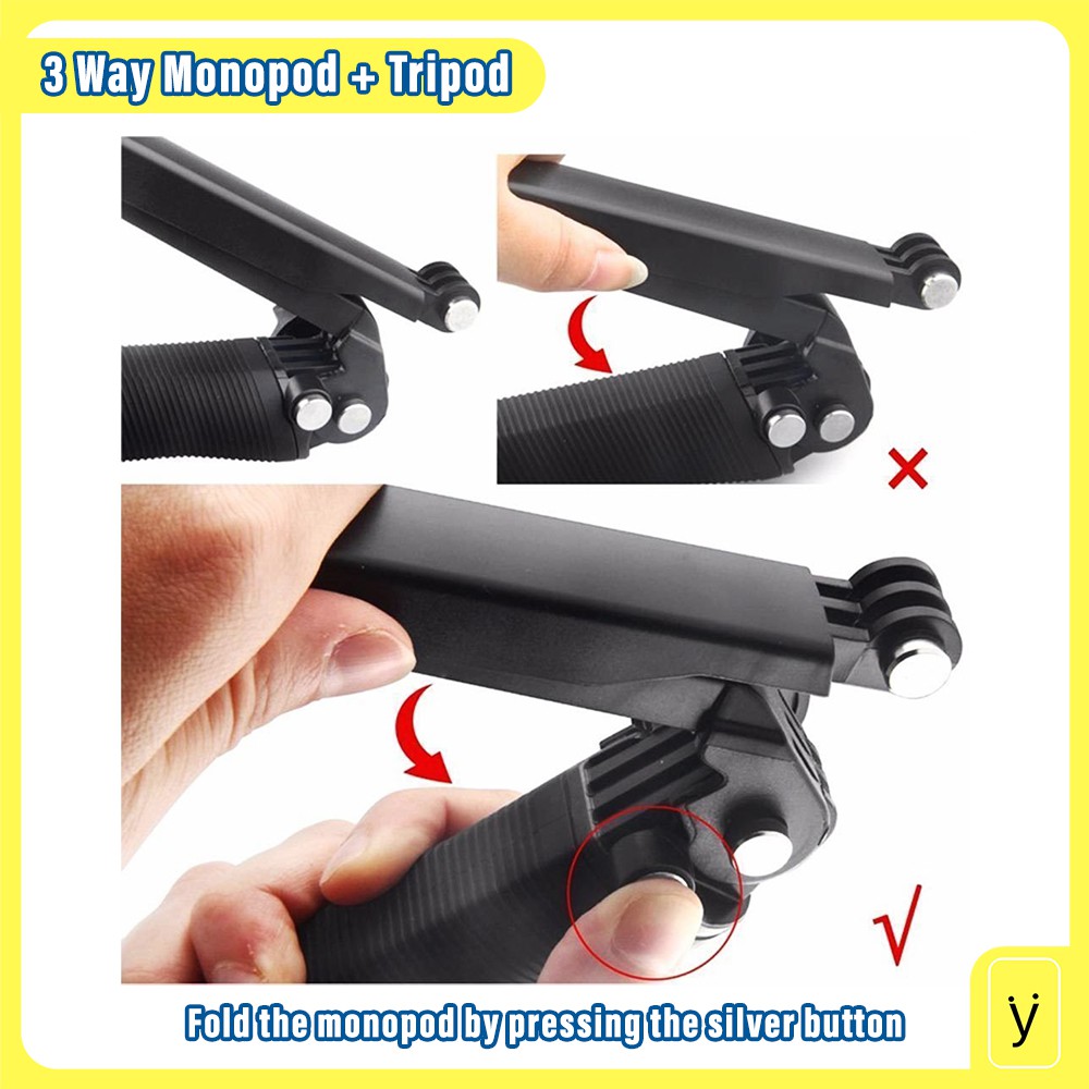 Limited (2 in 1) 3 Way Extendable Monopod with tripod stand function | Action Camera GoPro DJI Osmo Action Monopod