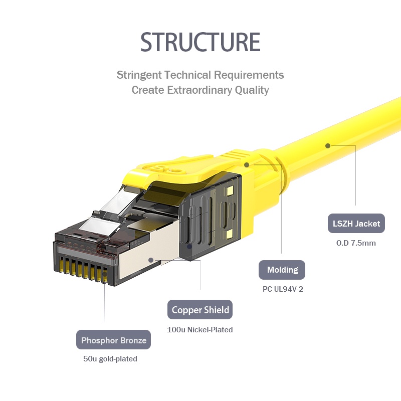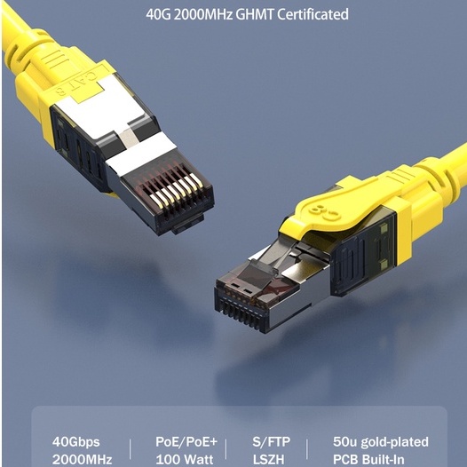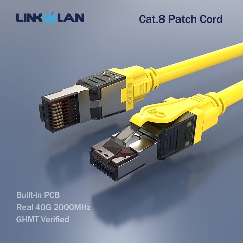 Linkwylan 40G Cat8 Cable SFTP 24AWG PCB Type RJ45 Cat 8 Patch Cord Connection Cable For Data Center Server Switch GHMT CAT8 Class I Channel Certificated
