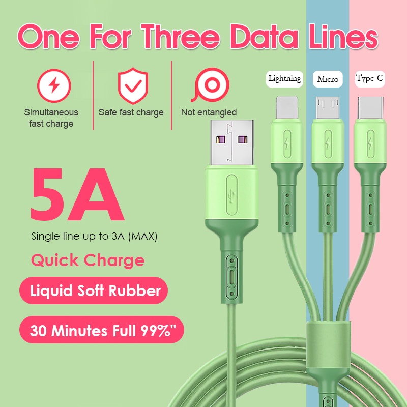 Liquid Silicone 3 In 1 USB Cable Fast Charger Cable Compatible for Android Samsung Huawei Quick Charger
