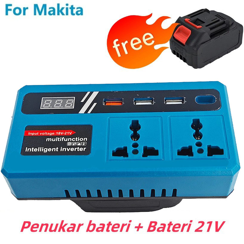 Lithium Battery Inverter Power Bank 18V-21V to 220V Smart Transformer/USB Port DC5V