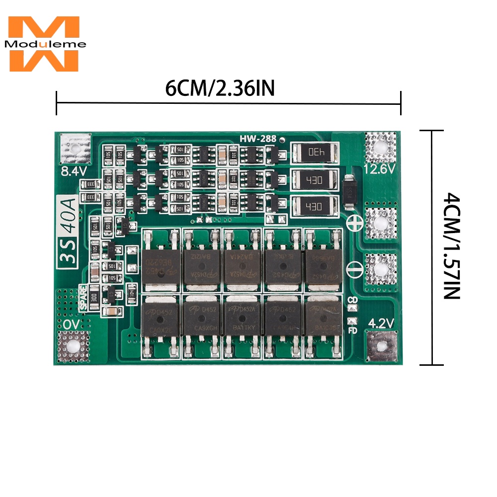 Lithium Battery Protection Board Li-ion Lithium Battery PCB Protection Board Module 3S 12V 40A Board with Balance Charging