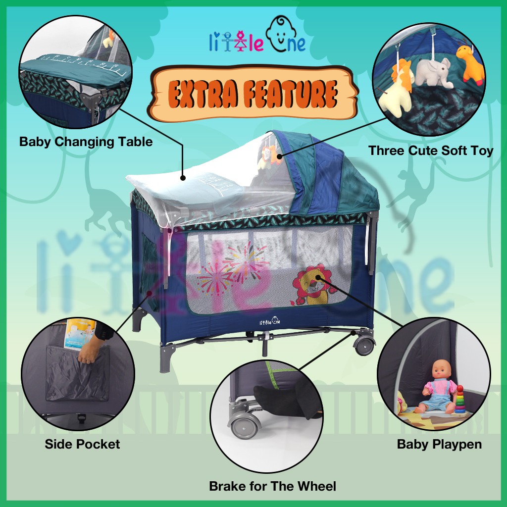 Little One Baby Cot Portable Baby Bed Playpen Travel Cot Mosquito Net Baby Crib Katil Baby