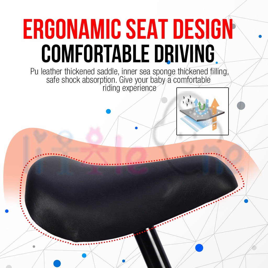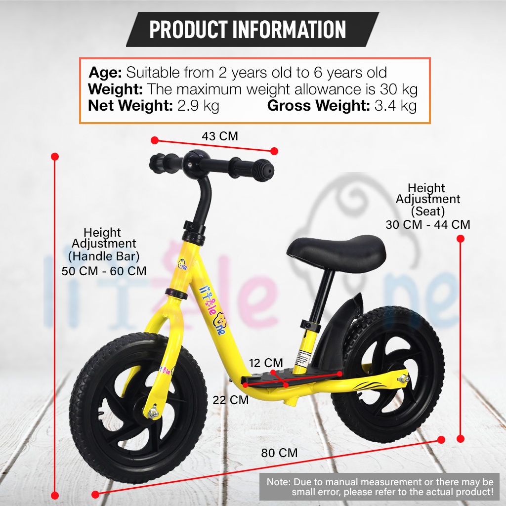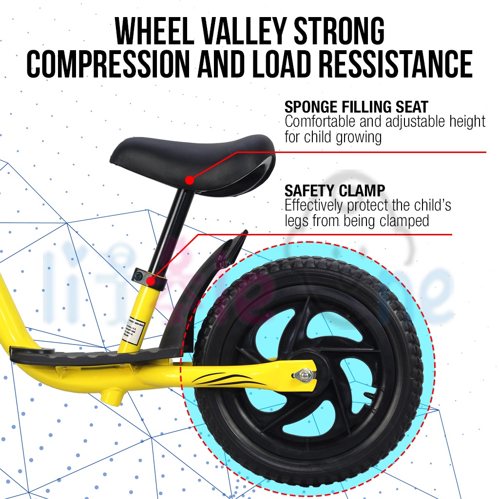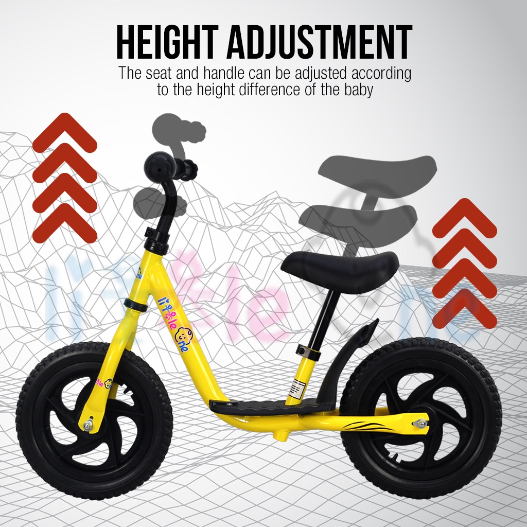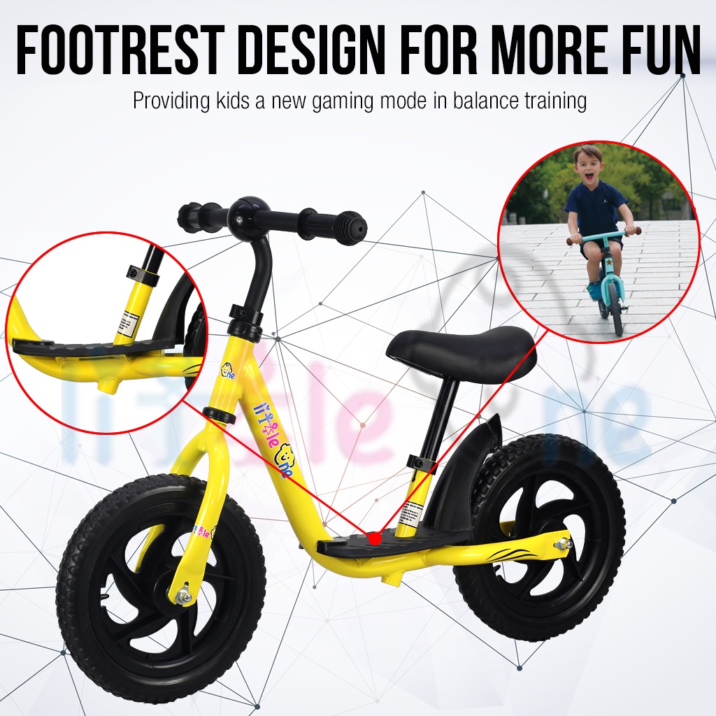 LittleOneBaby Kids Balance Bike 12 inch Colourful Push Bike No Pedal Height Adjustable Seat Pad & Footrest Platform
