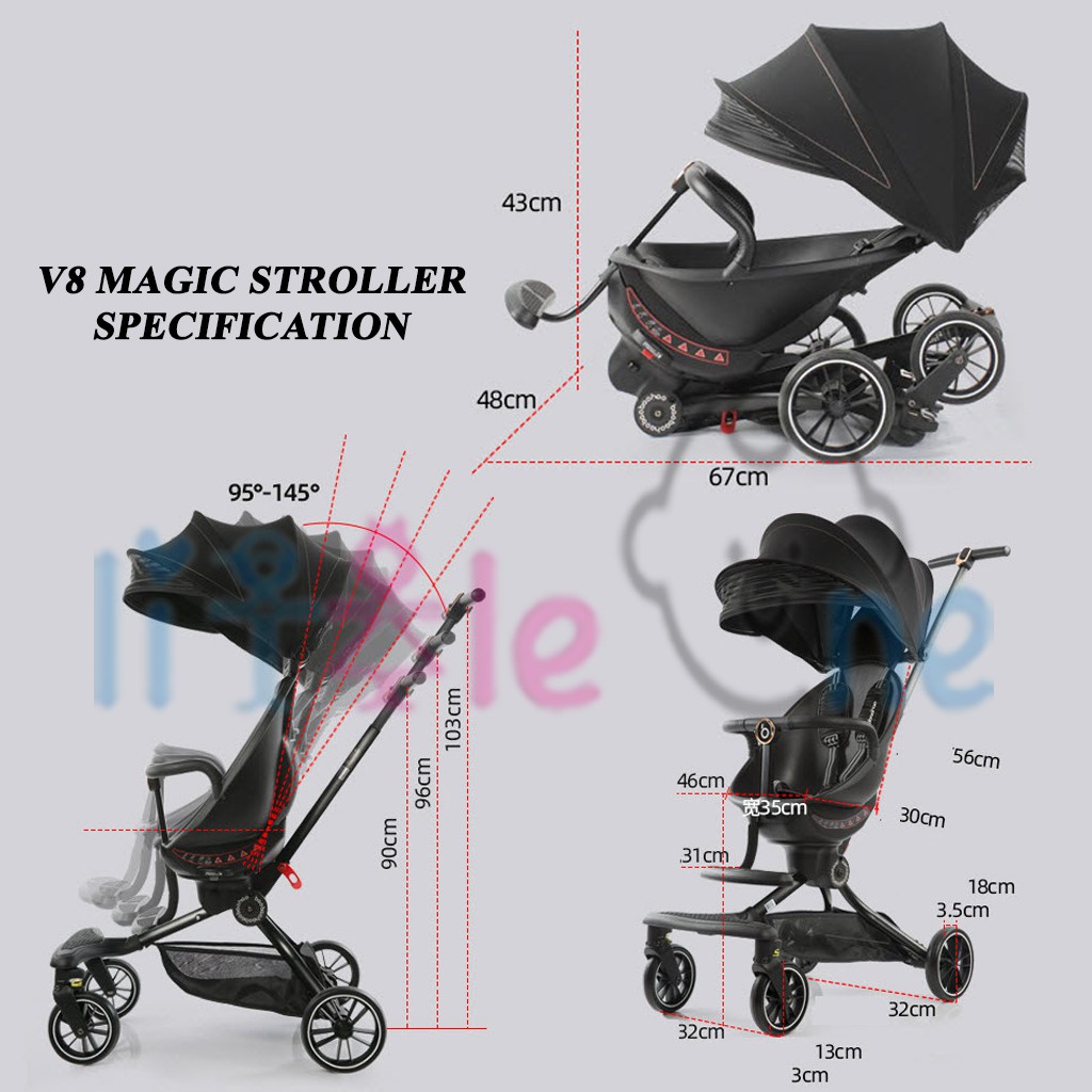 Littleone Advanced V8 Ultralight Foldable 2-Way Facing Magic Stroller Adjustable Awning & Rotating Seat with One Button