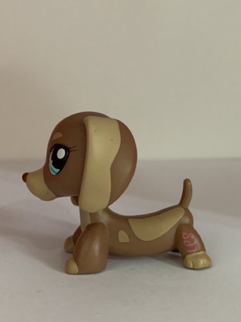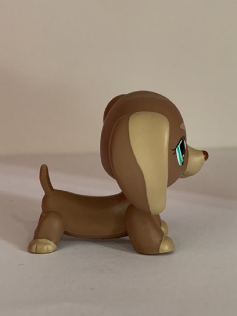 Littlest Pet Shop LPS Brown Dachshund with Teal Eyes #1751 + 5PCS RANDOM ACCESSORIES