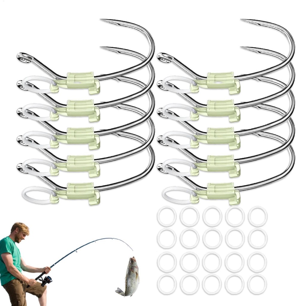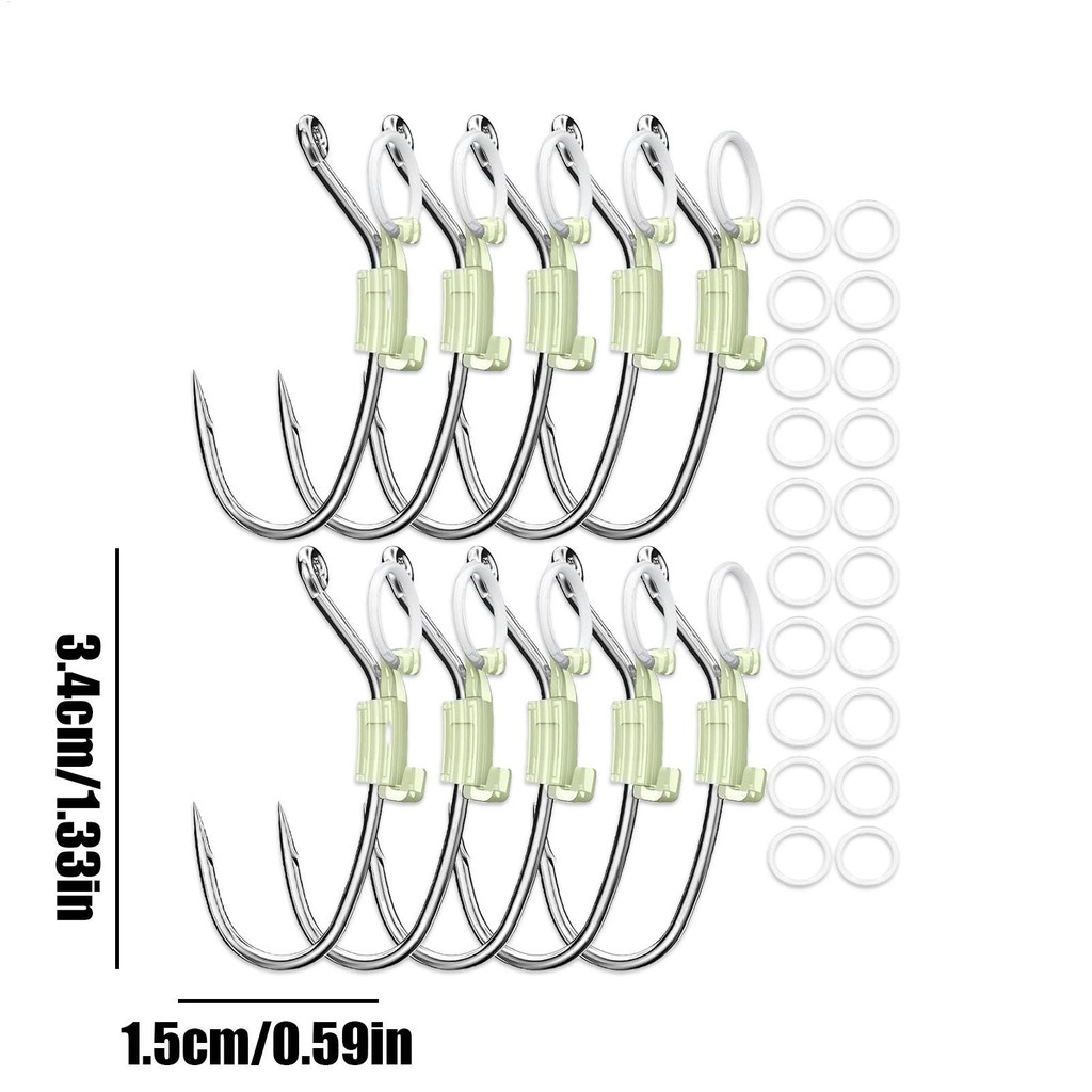 Live Shrimp Hook Luminous Baitholder Set of 10 Live Shrimp Fixed Hooks Carbon Steel Barbed with Holes Catfish Bass Fishing Accessories