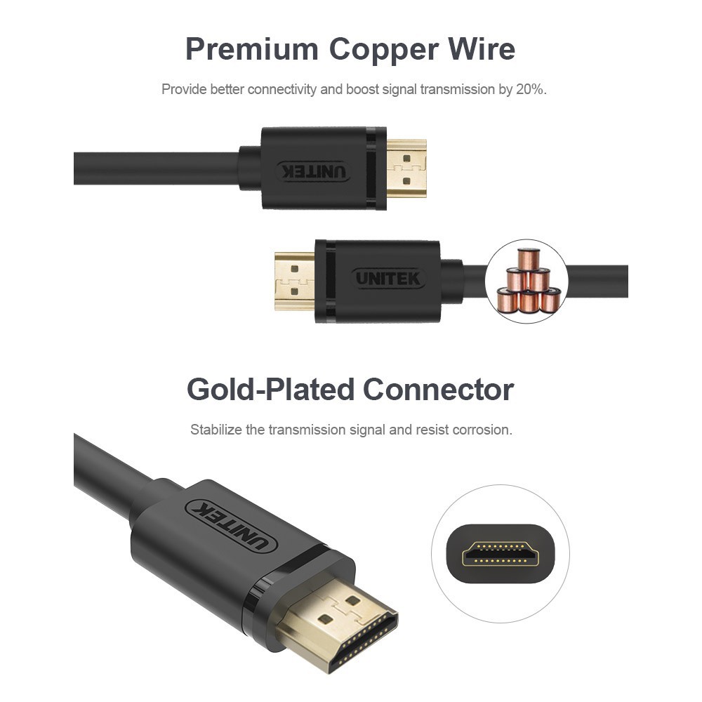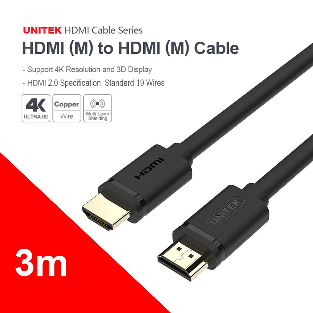 LiveTech Unitek HDMI (M) to HDMI (M) Cable 1.5m / 3m / 5m / 10m 4k Display Support 2.0