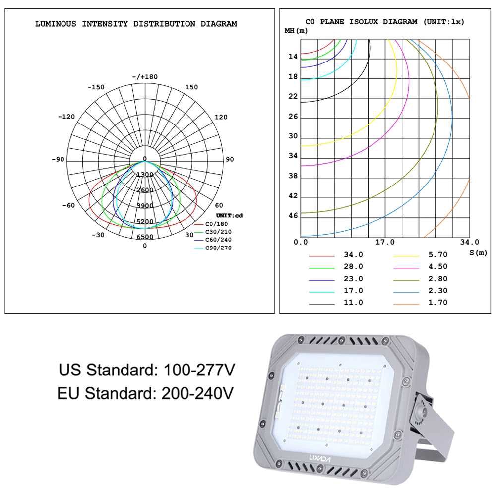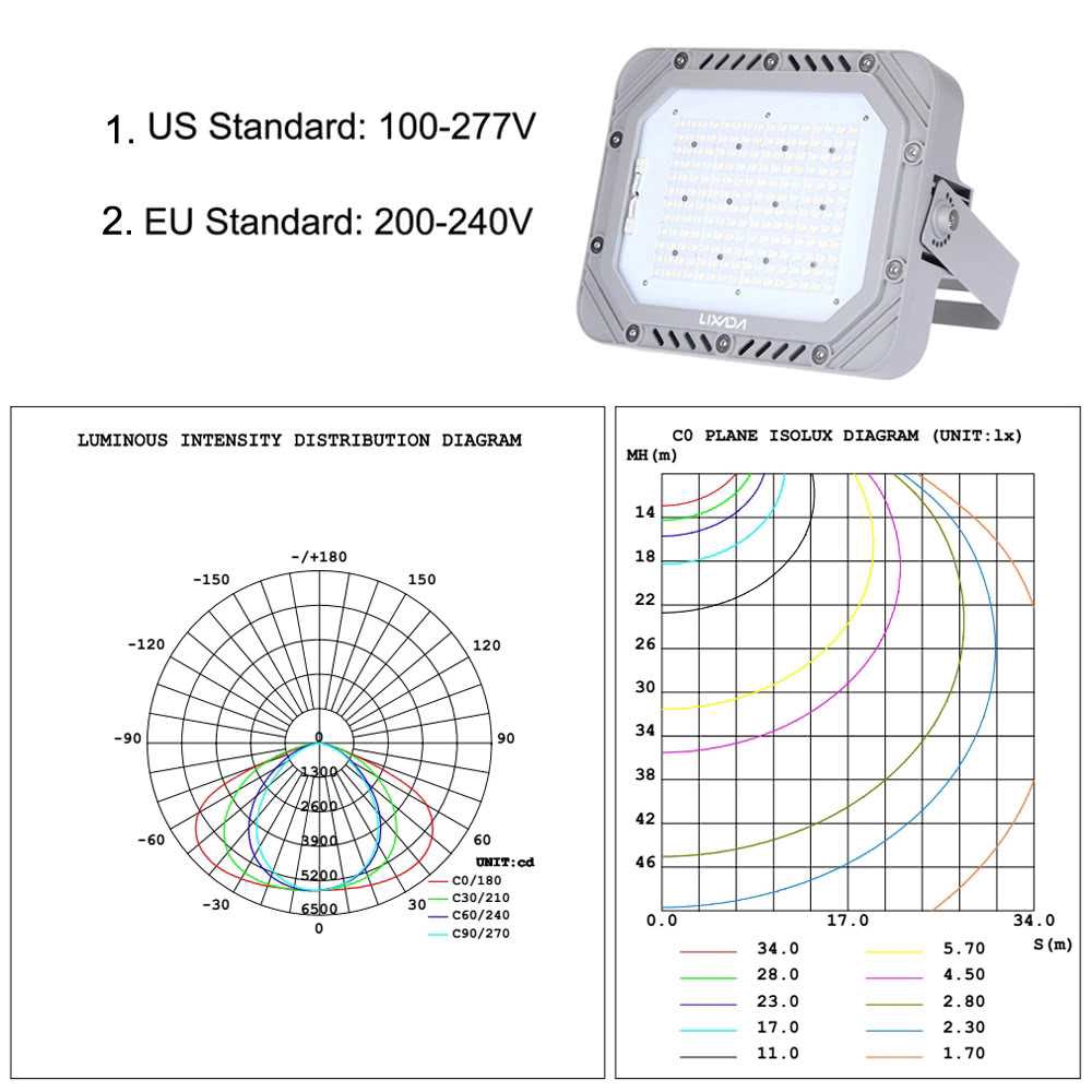 Lixada TUV 200-240V 150W 17250LM IP66 Water Resistant White LED Flood Light
