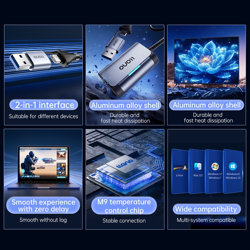 Llano Video Capture Card 2 in 1 USB C 3.0 Capture Card HDMI to USB C Audio Video Recording in 1080P@60Hz 2K@30Hz for Teaching Broadcasting Gaming Streaming Video Conference