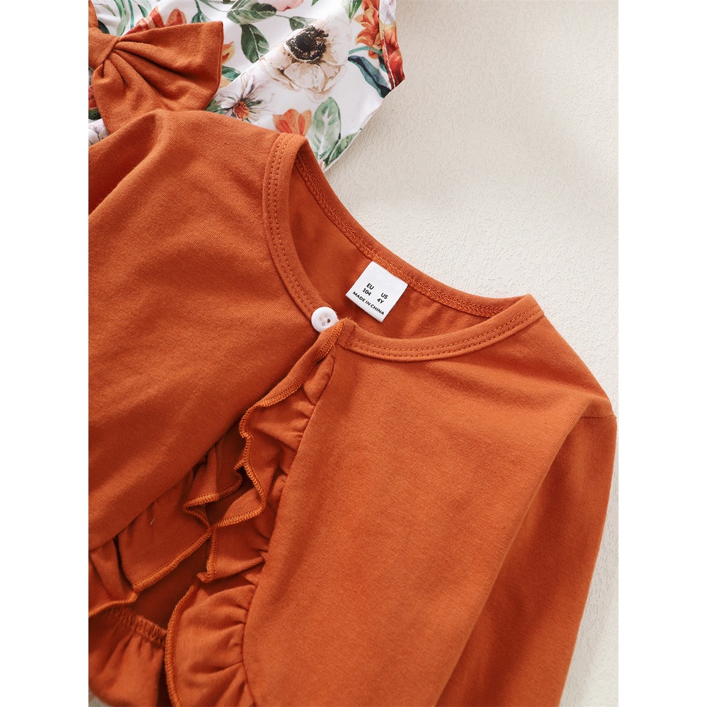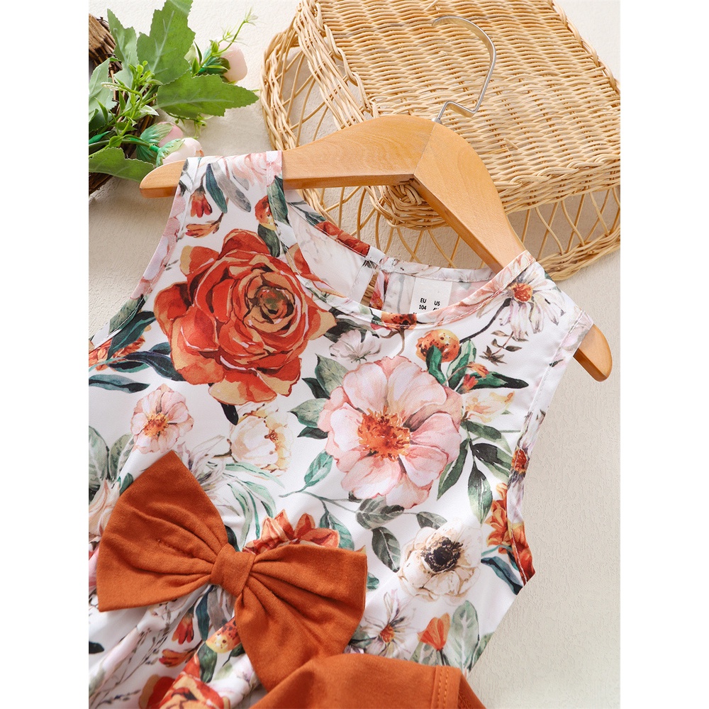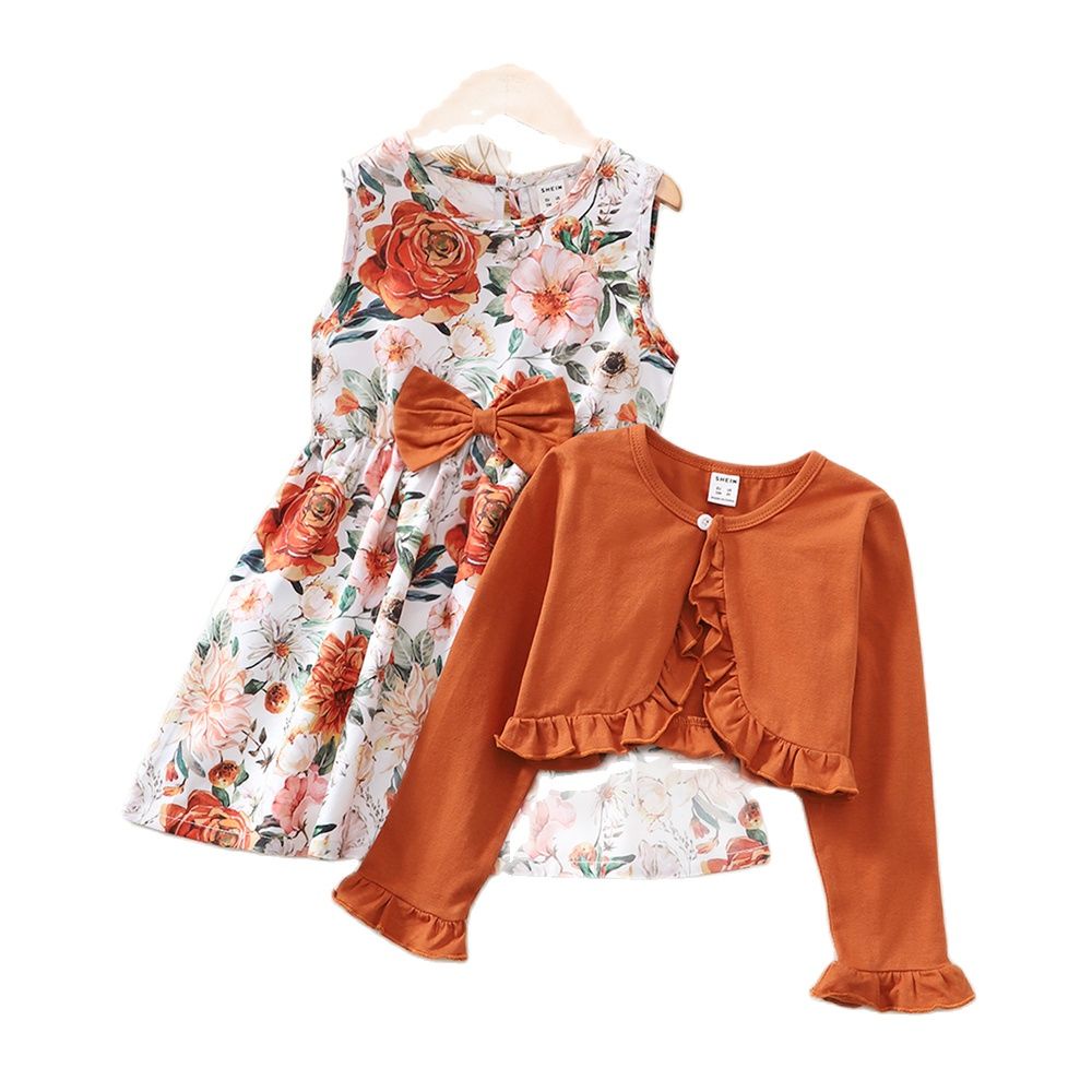baju budak perempuan 4-7Years Tahun Birthday dress budak perempuan Suit 2PCS Flower Sleeveless Princess Dress + Solid Color Long Sleeve Top Party Dresses for Kids Girl Outfit baju kanak kanak perempuan