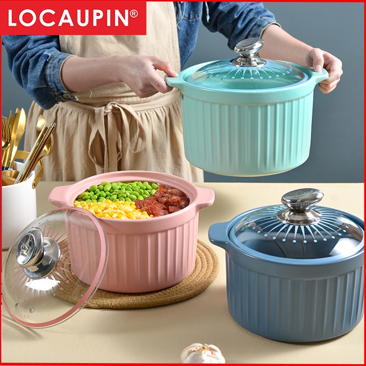 Locaupin Ceramic Stockpot, Stovetop Ceramic Cookware, Soup Pot Stew Pan Casserole Clay Pot Earthen Pot Healthy Stew Pot