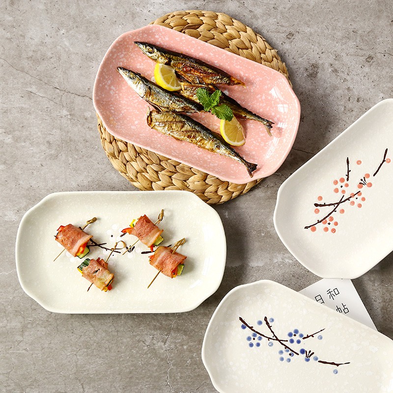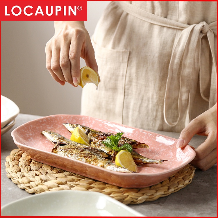 Locaupin12'' Rectangle Dinner Plates , Japanese Glazed Ceramic Plate Family Dinner Plate, Fish Plates Serving Dishes
