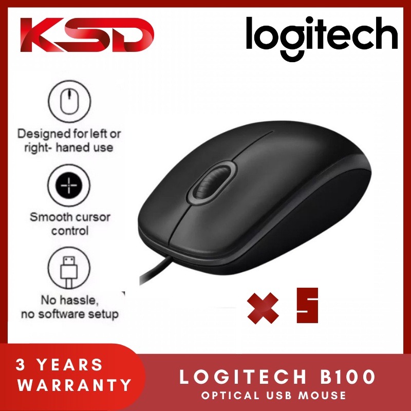 Logitech B100 Optical USB Mouse with USB Connection/Optical Tracking/800 Dpi Resolution