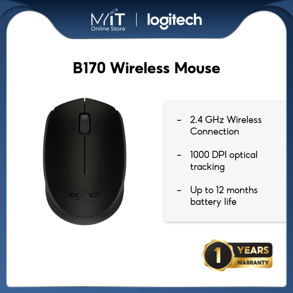 Logitech B170 Wireless Mouse, 2.4 GHz with USB Nano Receiver, Optical Tracking, 12-Months Battery Life, Ambidextrous, PC