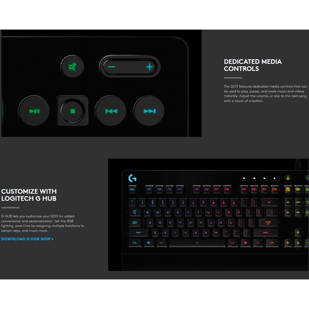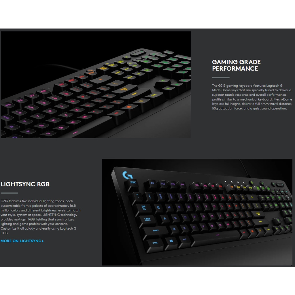 Logitech G213 Prodigy RGB Gaming Keyboard with RGB Lighting, Spill-Resistant & Durable, Adjustable Feet, Customize G Hub