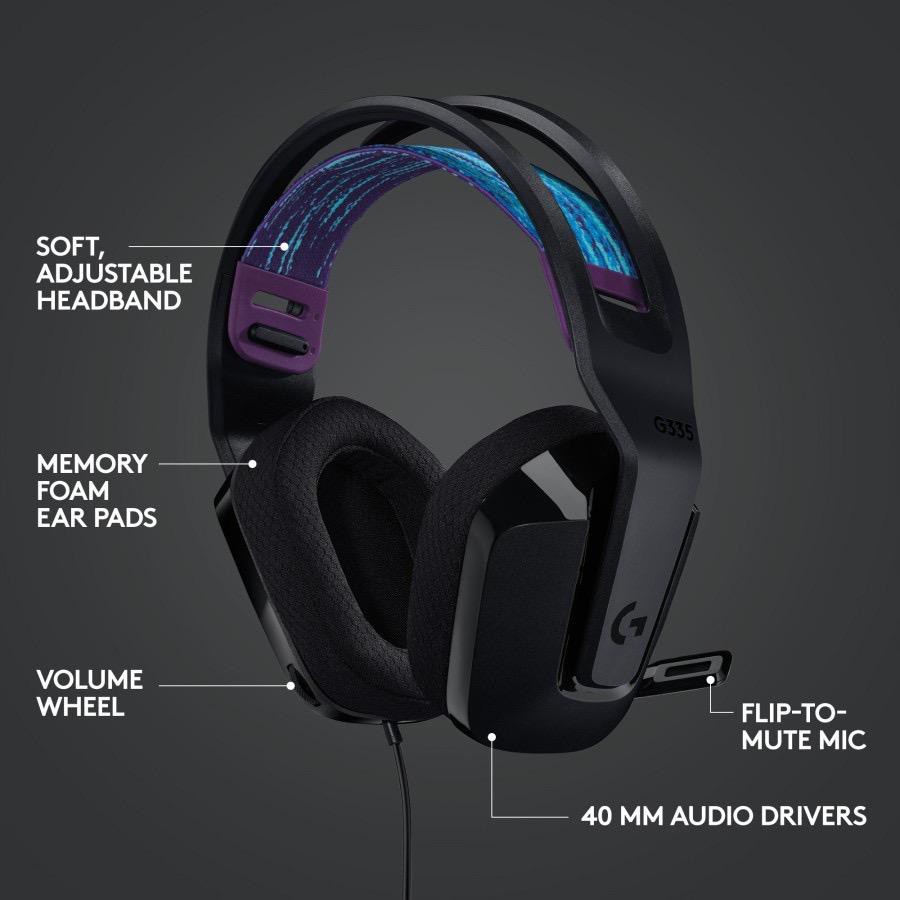 Logitech G335 Wired Gaming Headset Black,White with Flip to Mute Microphone