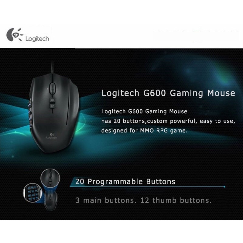 Logitech G600 MMO Gaming Mouse, RGB Backlit, 20 Programmable Buttons