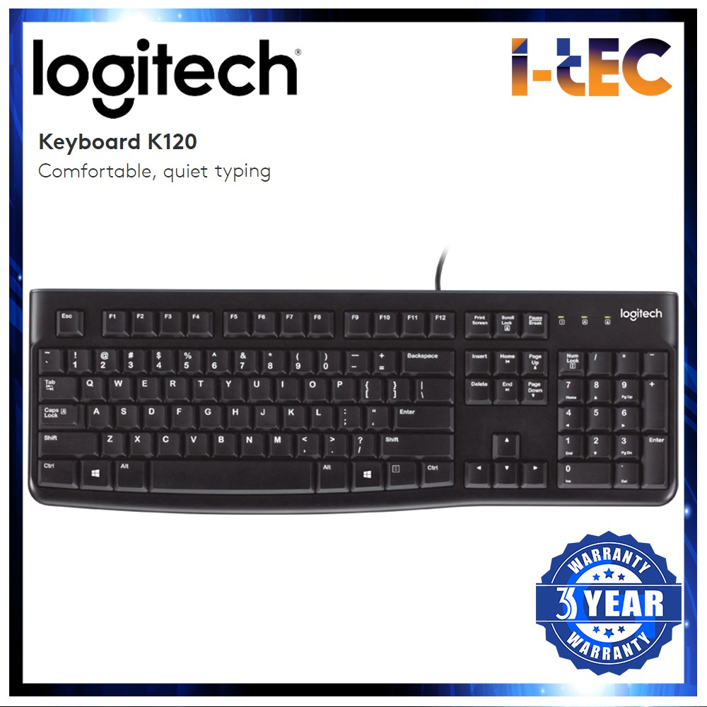 Logitech K120 Comfortable, quiet typing Wired Keyboard
