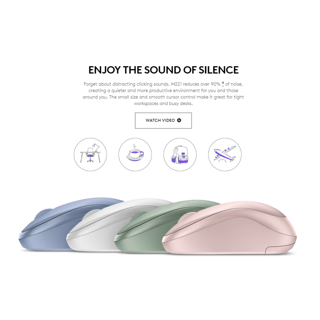 Logitech M221 Wireless Mouse, Silent, 2.4 GHz, PC/Mac/Laptop - (Charcoal, Blue, Red, White, Rose)