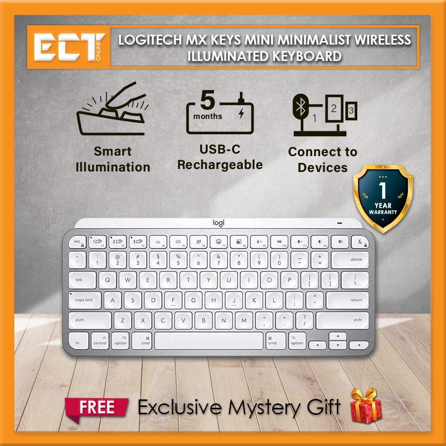 Logitech MX Keys Mini Minimalist Wireless Illuminated Keyboard with Multi OS Support (Graphite, Pale Gray, Rose)