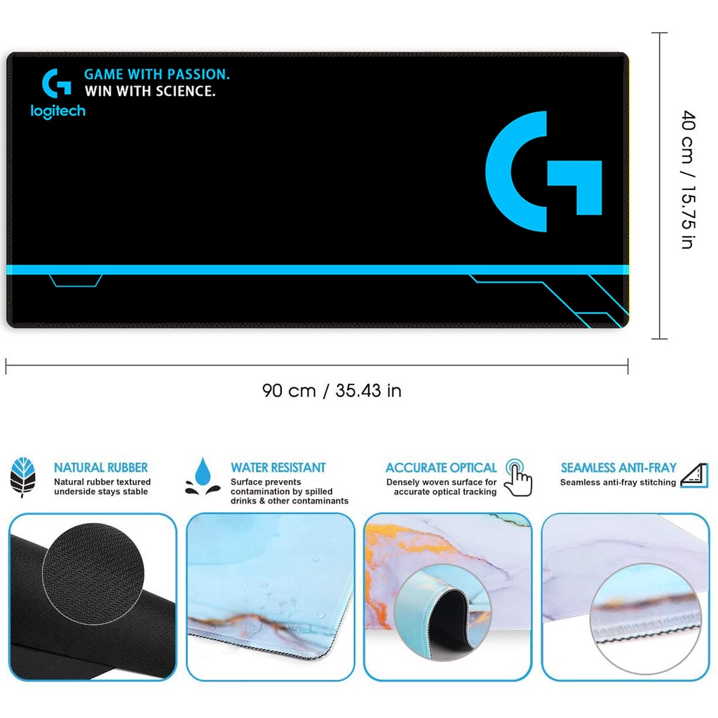 Logitech Mousepad Extended Mousepad Large Gaming Mouse pad Stitched Edge Deskpad Deskmat