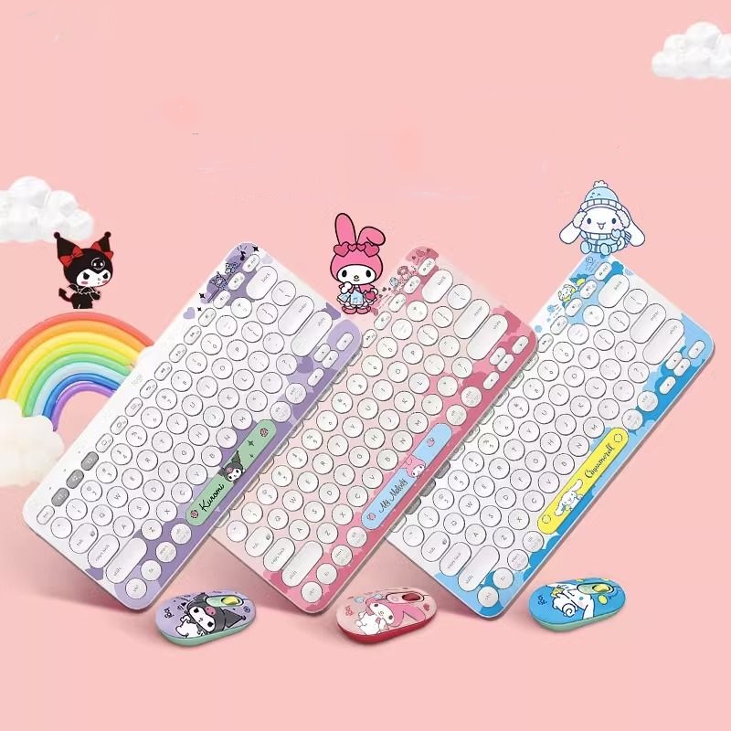 Logitech Sanrio Co-branded K380 Wireless Keyboard Mouse Set Kuromi Cinnamoroll Melody Hello Kitty Keycap Cute Keycap Wireless Mini Portable Widely Compatible Keyboard Set