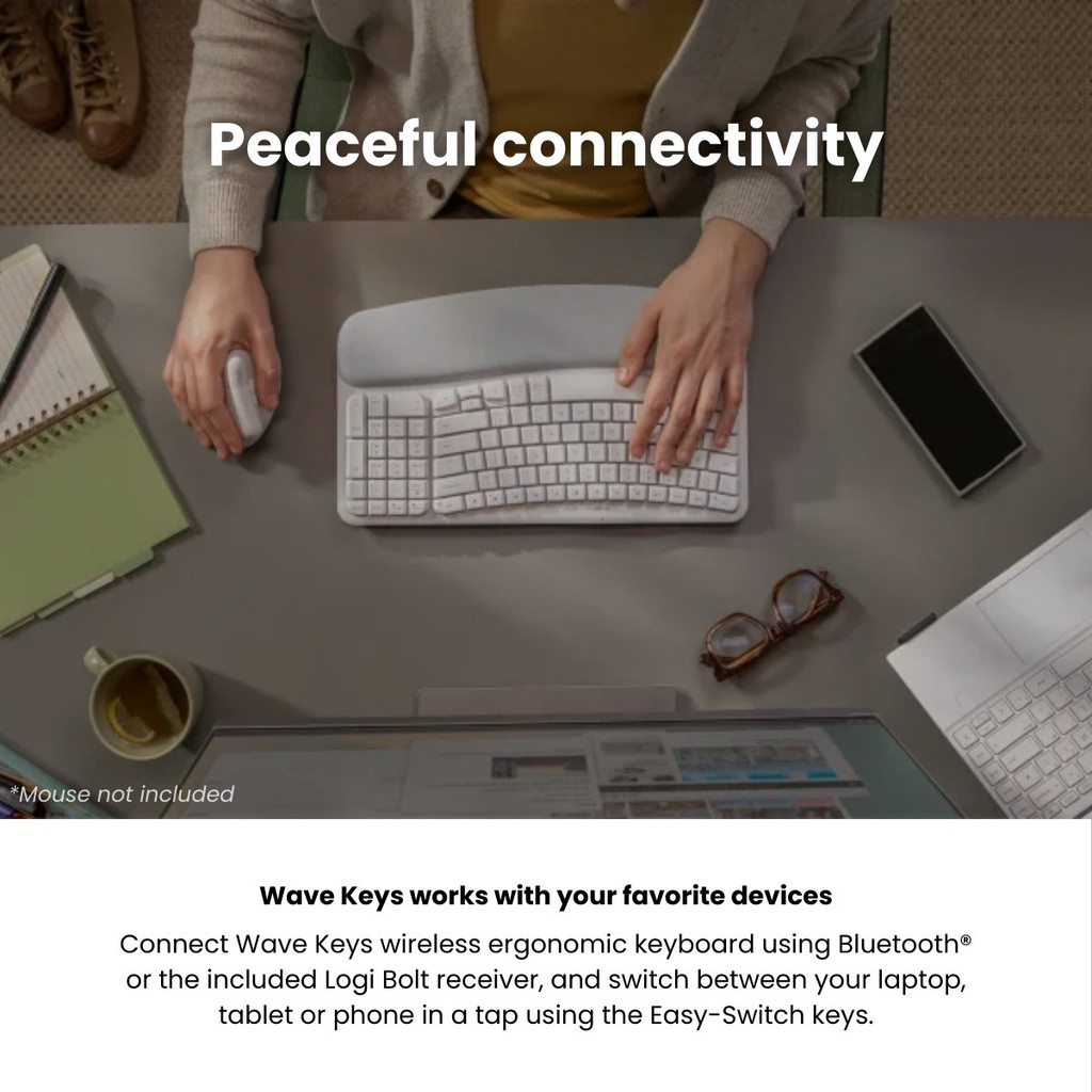 Logitech Wave Keys Ergonomic Wireless Keyboard | Ergo Series