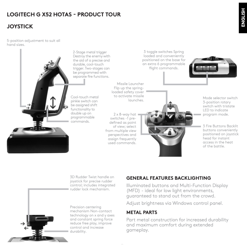 Logitech logicool X52 HOTAS Flight Simulator Joystick for PC & Console Games