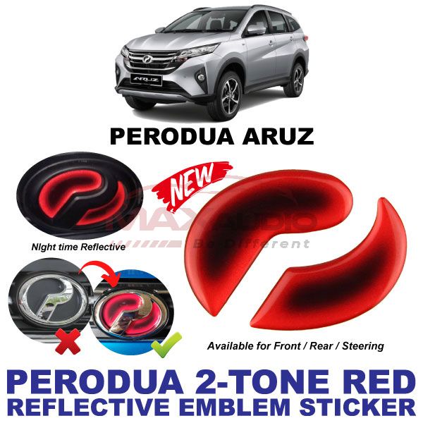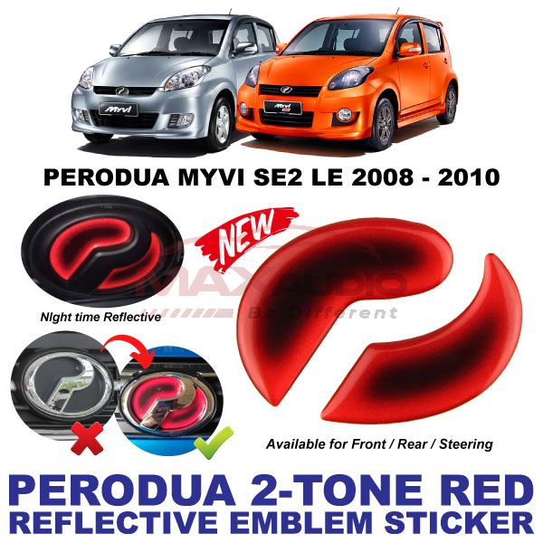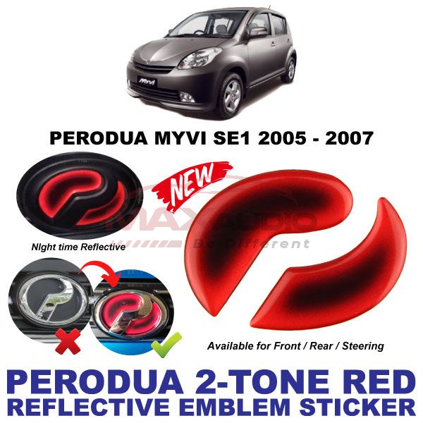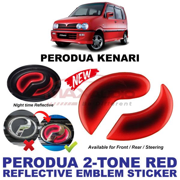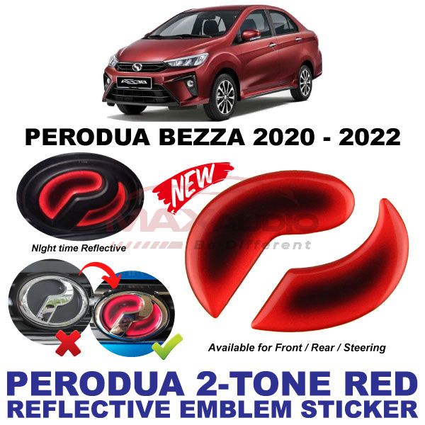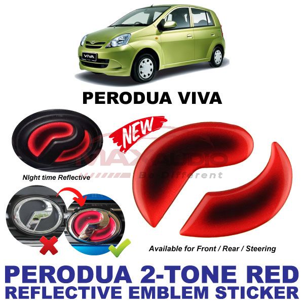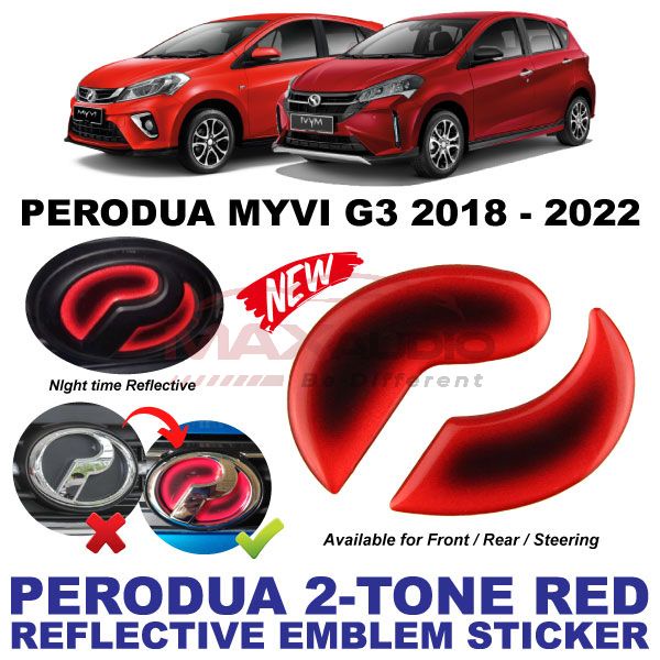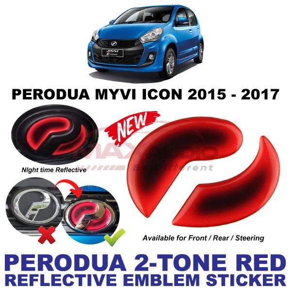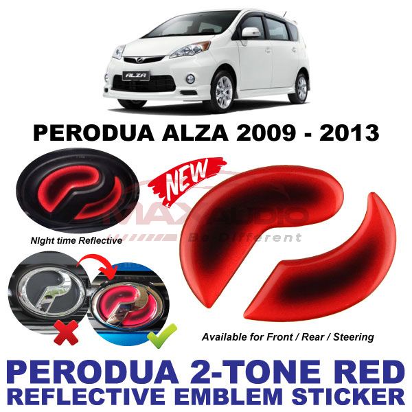 Logo Emblem Sticker PERODUA ALZA AXIA BEZZA MYVI VIVA ARUZ Front Rear Steering Night Reflective 2-Tone Epoxy Red Black