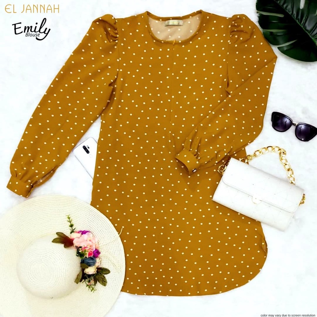 Long Blouse Polkadot White Dusty Pink Baby Blue Maroon Moss Green Puff Shooulder Nursing Friendly Ruffle Exclusive 48