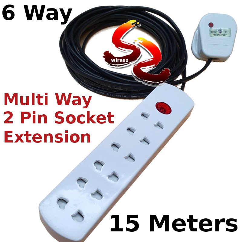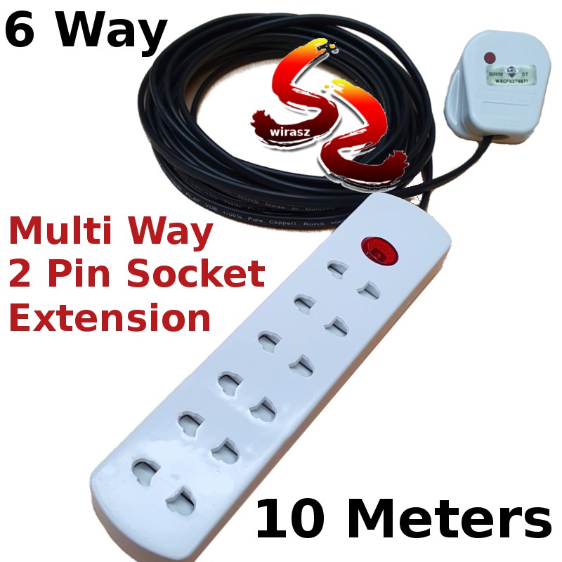 CUSTOM MADE Extra Long Cable 4 way 5 way 6 way 2 Pin Extension socket 100% Pure Copper Malaysia cable trailing Socket