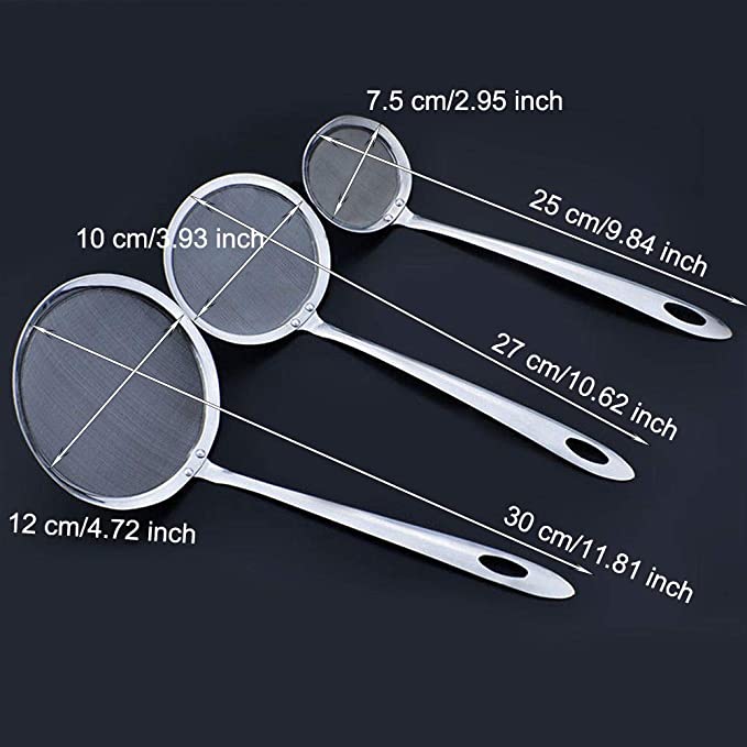 Long Handle Stainless Steel Fine Mesh Strainer Spoon /Stainless Steel Soup Mesh Strainer /Kitchen Food Sifter Skimmer Scoop /Vegetable Residue Oil Mesh Colander Strainer