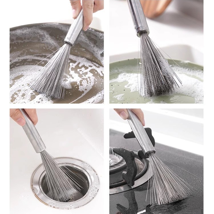 Long Handle Stainless Steel Wire Brush / Iron Pans Pot Dish Washing Scouring Tool / Kitchen Utensil Scrubber / Sink Stai