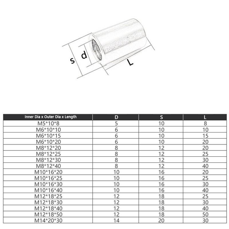 Long Round Connector Nuts A2 Stainless Steel Nut M3 M4 M5 M6 SS 60