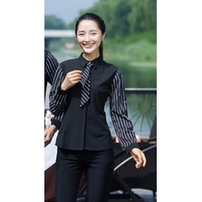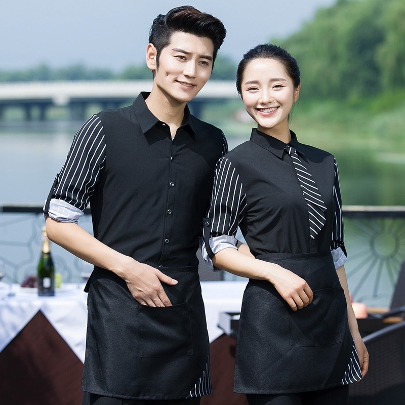 Long Sleeve Waiter Uniform Woman Cafe Staff Work Wear Coffe Shop Waitress Uniform KTV Bar Worker Service Chef Tops Overalls
