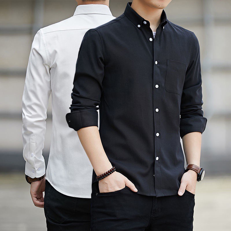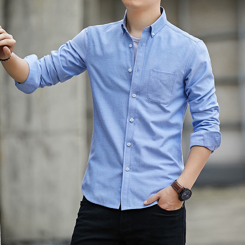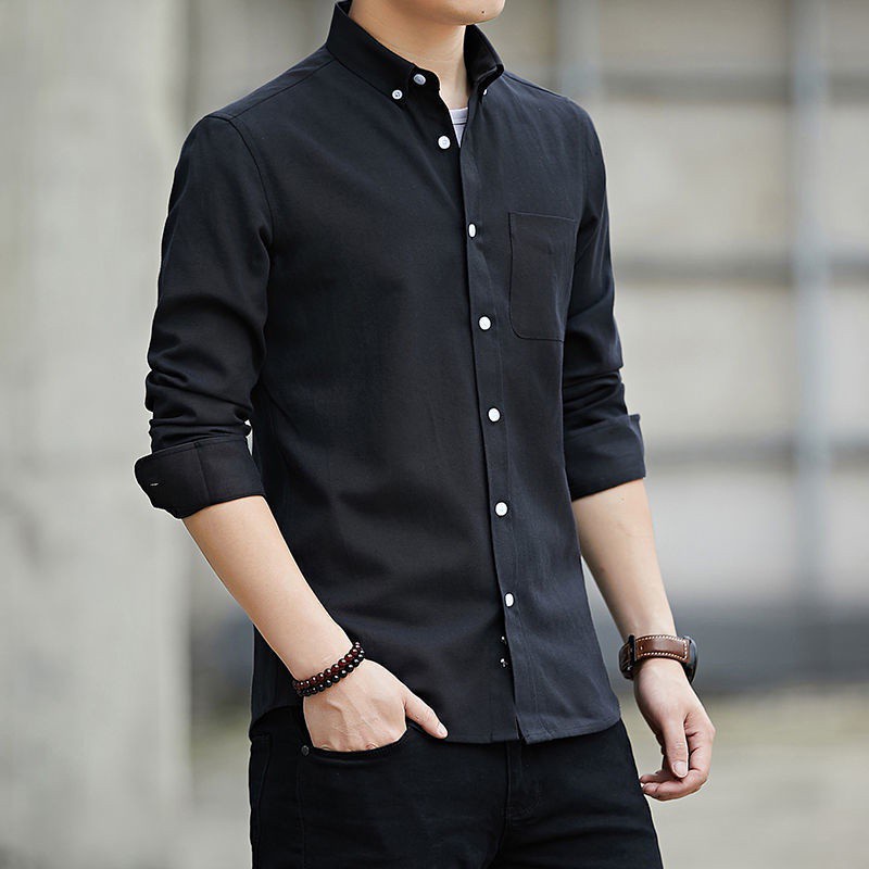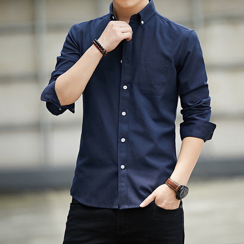Long-sleeved Shirt Men S Business White Shirt Casual Shirt All-match Office Shirt Men's Black Shirt Navy Blue Gray Blue Plain Shirt