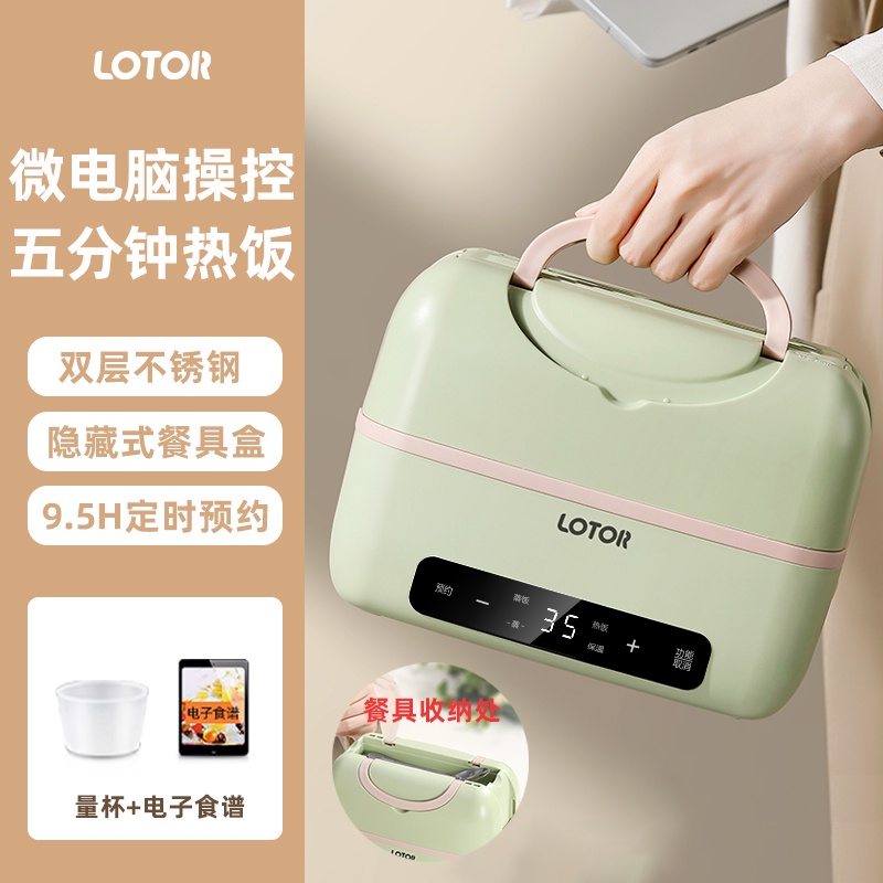 Lotor Electric Lunch Box 1.2L Plug-In electric heating lunch box BE-FH998 Water free electric lunch box Heating Food cooking lunch box Office Workers Portable Bento box Self-Heating Thermal Insulation Box with Rice Lunch Bag gift multifunction lunch box