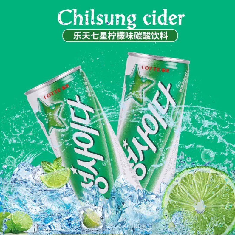 Lotte Chilsung Cider Soda 250ml Can refreshing korea drinks beverage Halal 韩国乐天七星柠檬味雪碧