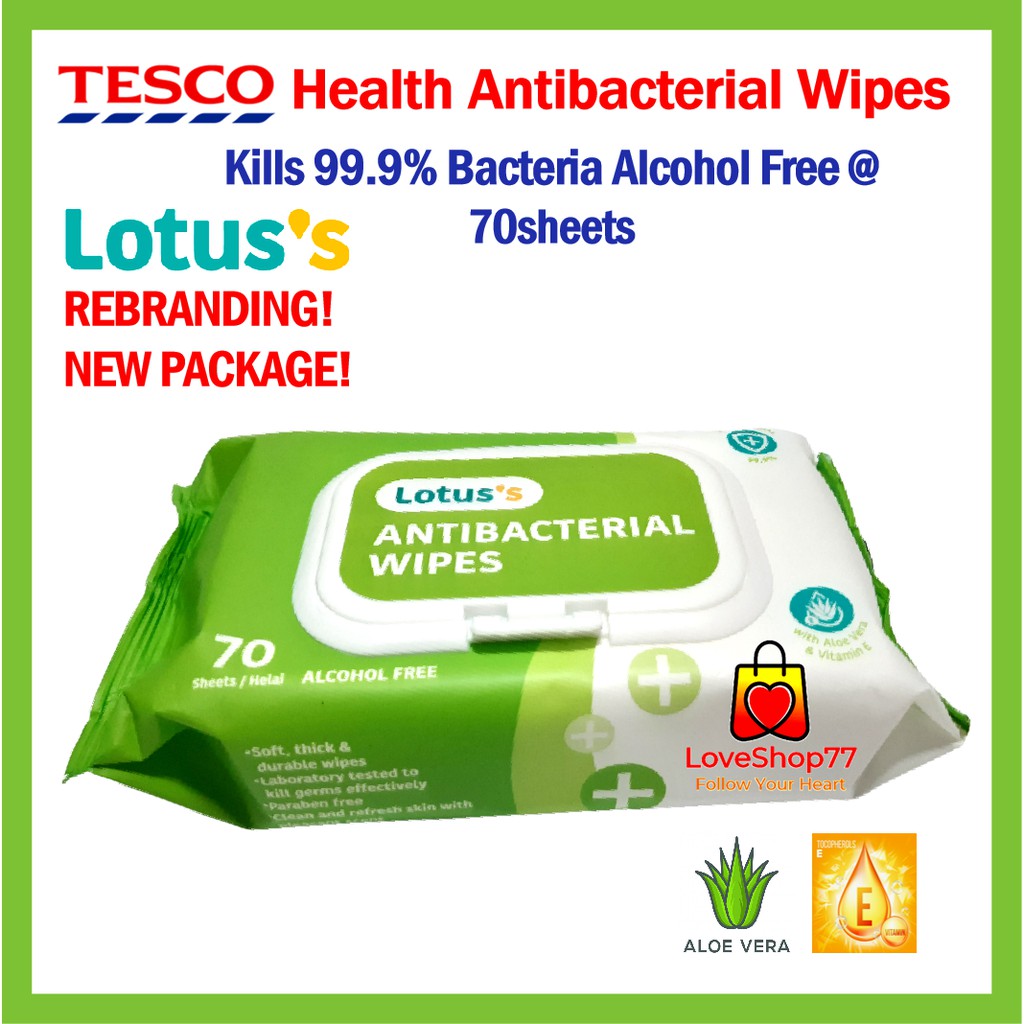Lotus's TESCO Health Antibacterial Wet Wipes 70 sheets Tisu Basah Pembasmi Kuman TESCO LOTUS's 70 helai