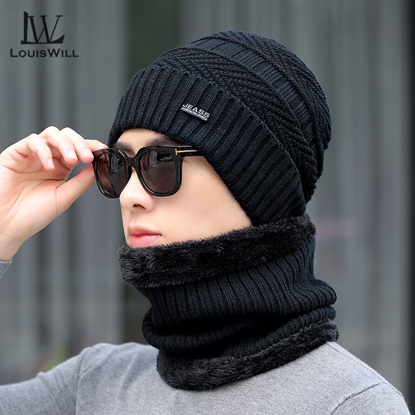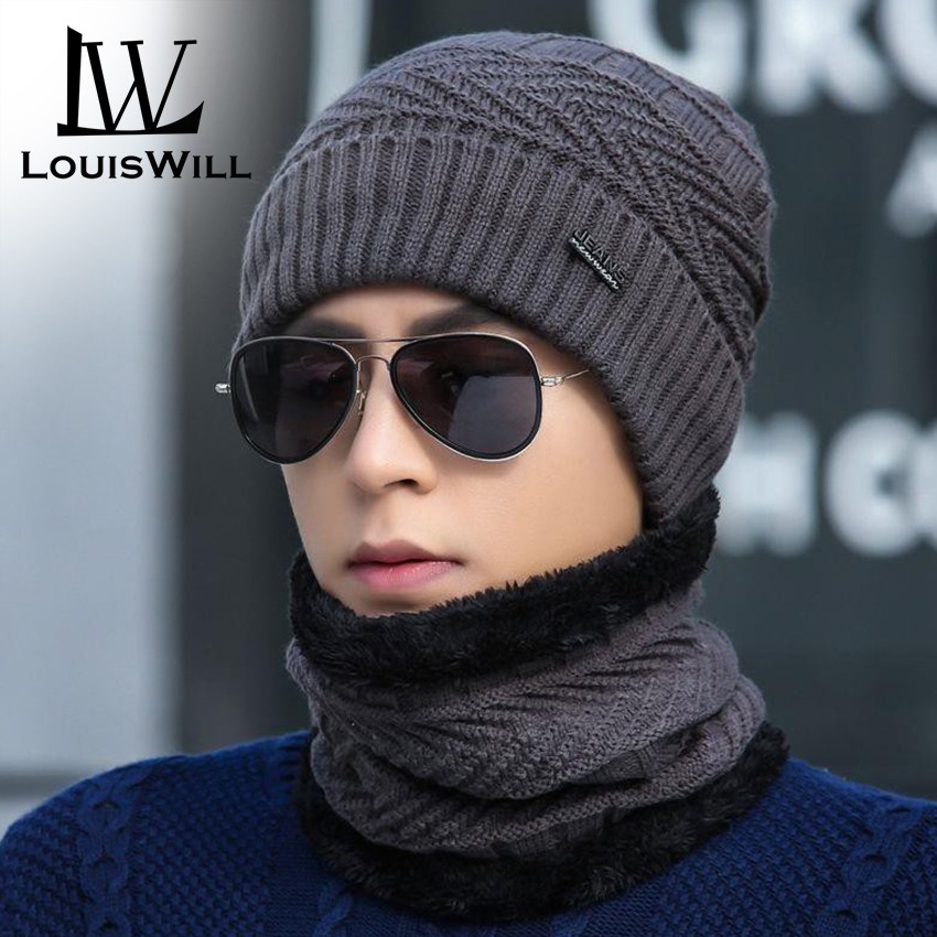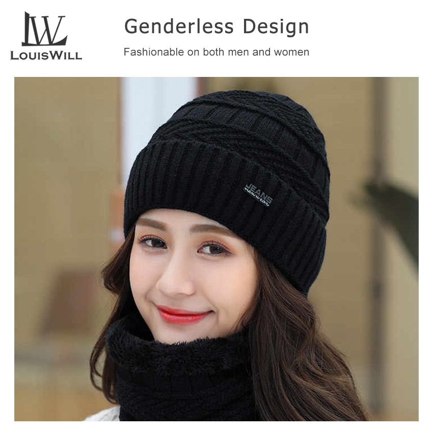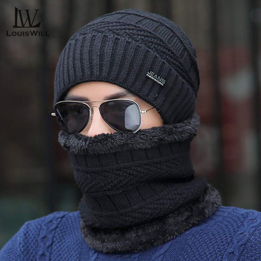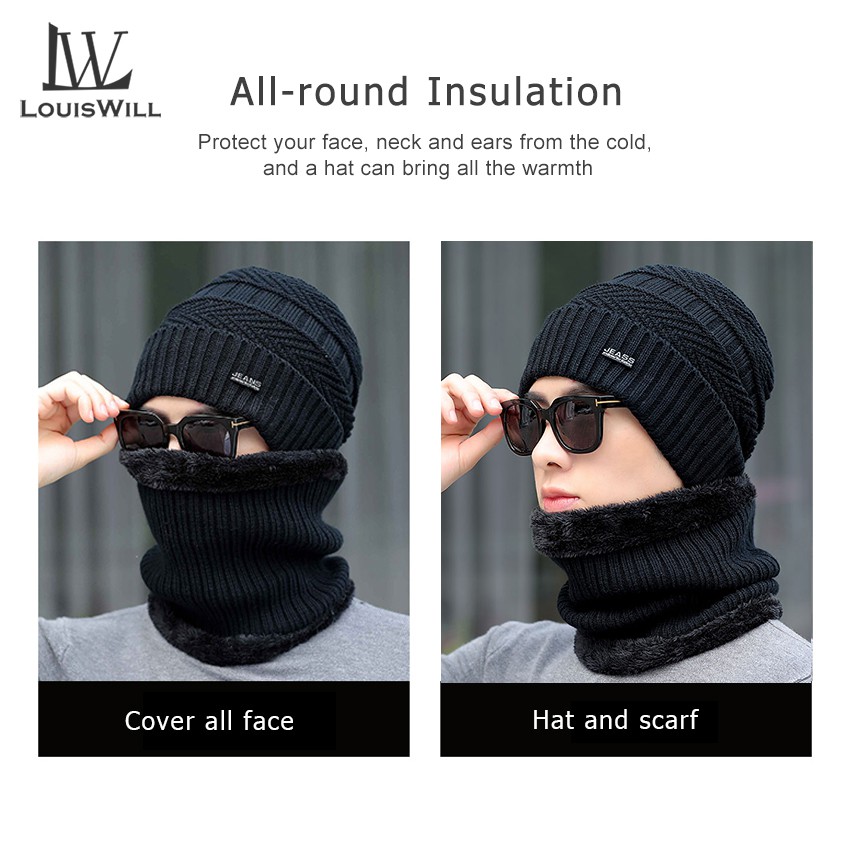 LouisWill Winter Hats Beanie Wool Hats with Thick Knitted Cap Scarf for Storm Cold Winter Climbing SkiingHiking