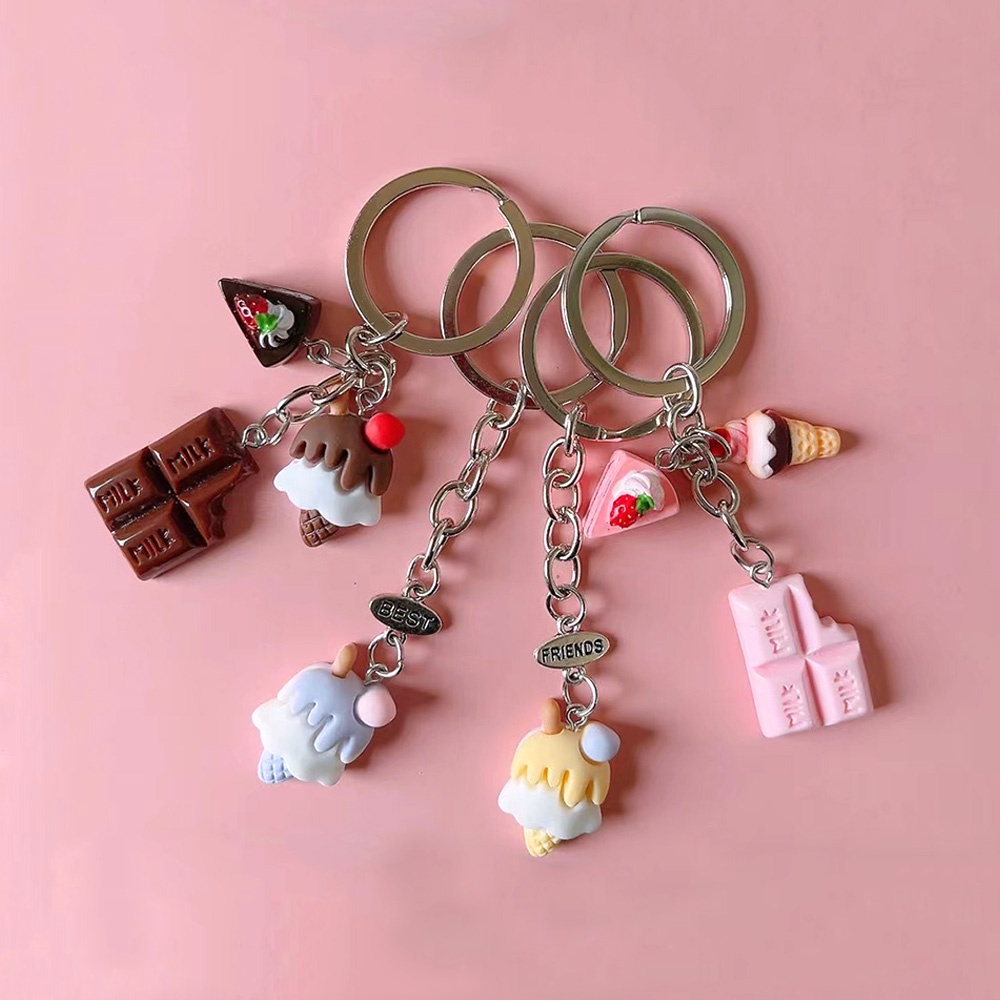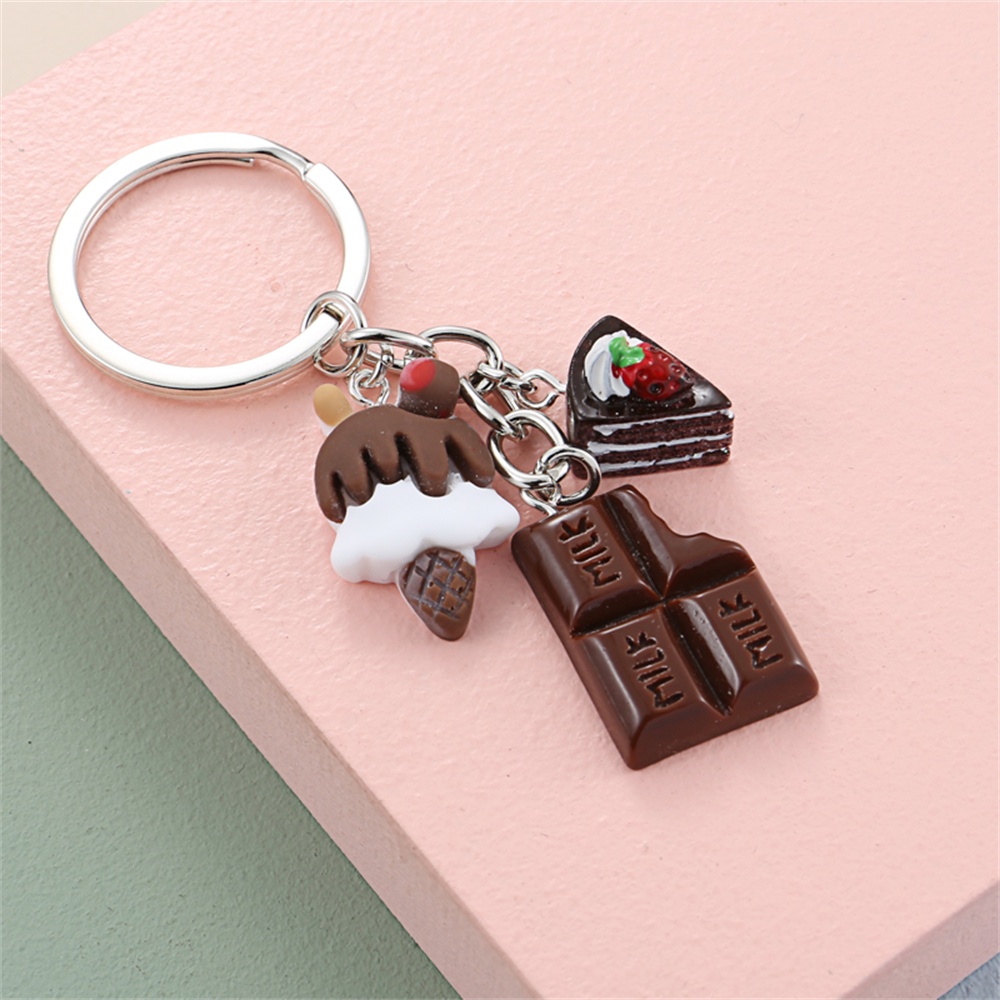 Lovely Dessert Keychain Afternoon Tea Resin Keyring Ice Cream Chocolate Cake Key Pendant Car Key Holder Women Girl Gifts Jewelry