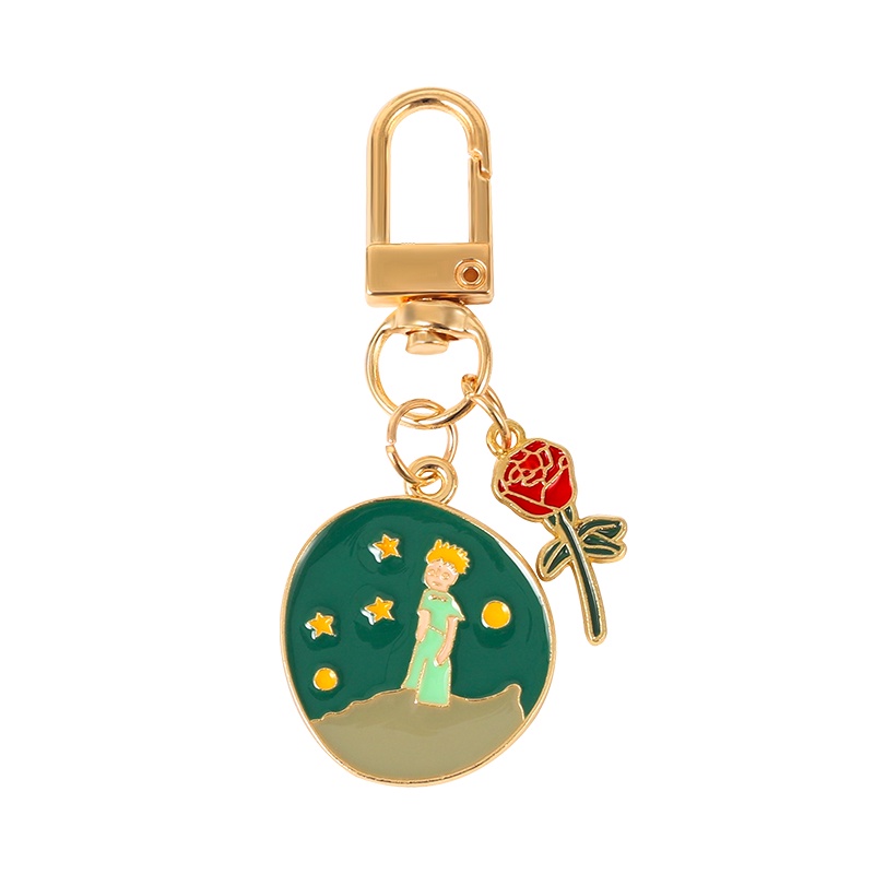 Lovely Rose Boy Little Prince Pendant Key Chain Little Fox Planet Universe Keychains Bag Pendant Key Ring