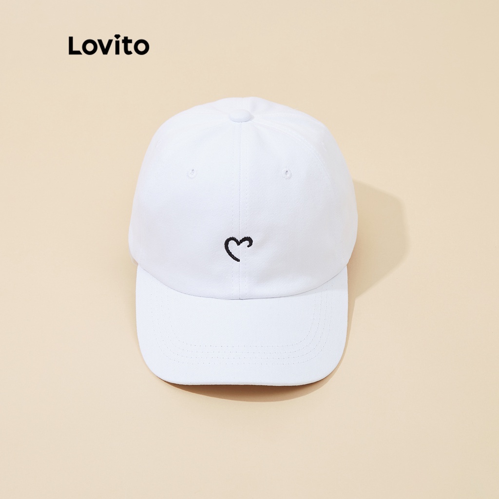 Lovito (Wholesale) Hat Casual Heartshape Embroidery Baseball Cap Hats for Women L233L248 (Black/White)