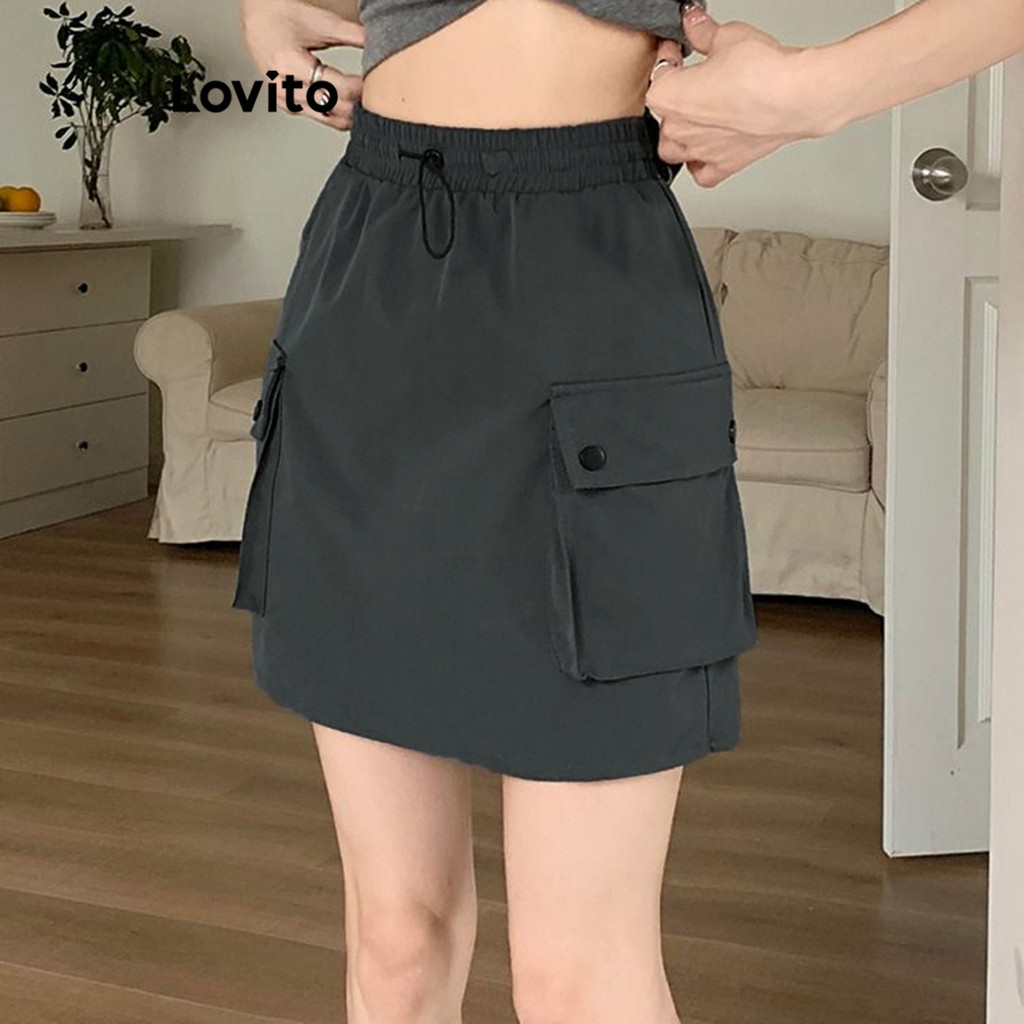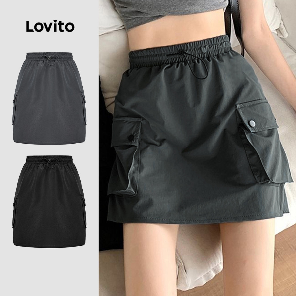 Lovito Casual Skirts Plain Pocket Skirt for Women LNE16165 (Multi-color)