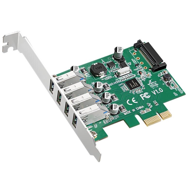 Low Profile PCIE to 4 Port USB 3.0 PCI Express Extension Card (Sata PSU Powered)