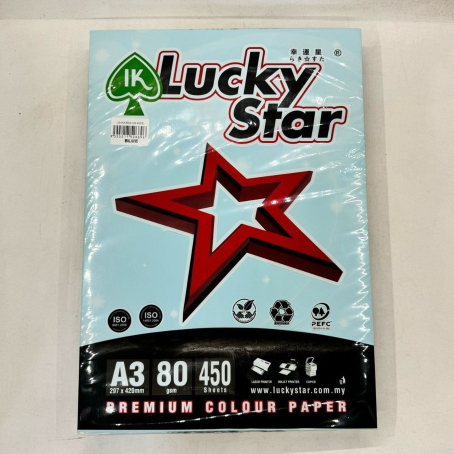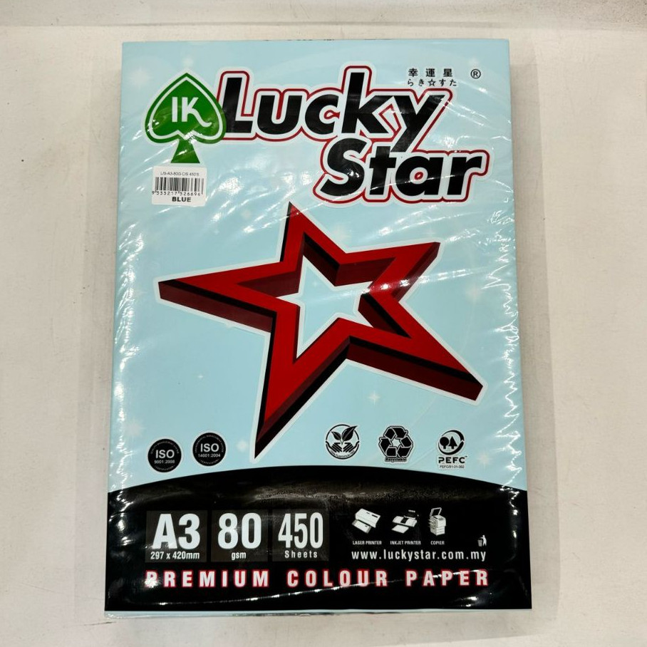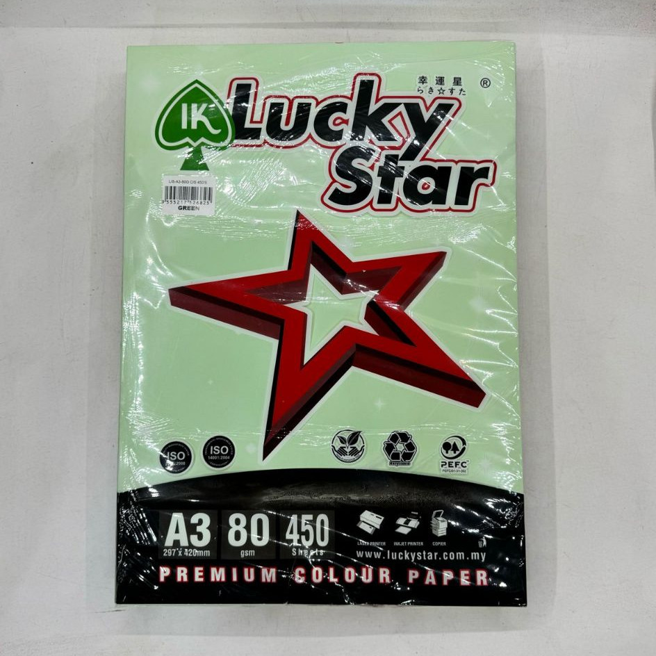 Lucky Star A3 Colour Paper 450sheets 80GSM/Kertas Warna A3(Light Colour)
